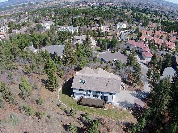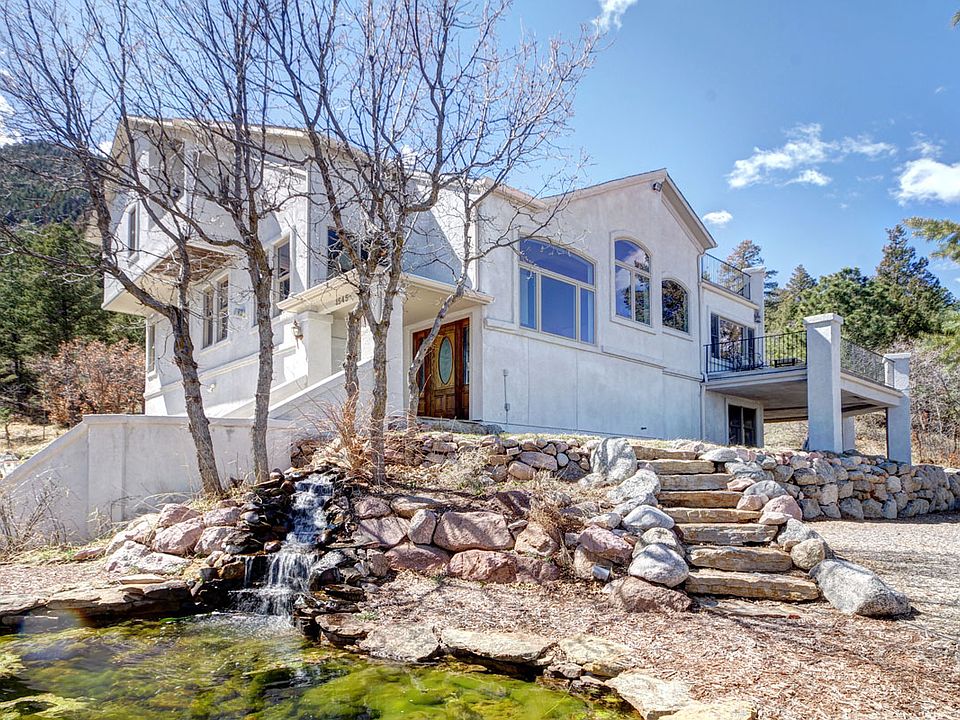 Unobstructed city and mountain views! Nestled in the pines on 1.39 acres and backs to a no-build area and the Cheyenne Mountain Zoo. Stunning entryway with curved oak staircase. Open floor plan with vaulted ceiling and skylights. Formal dining and living room with hardwood floors and gas fireplace. Great room with 2 story ceiling and wall of windows to take in those amazing views of the city below. Impressive gourmet kitchen with professional grade appliances. Master suite with private view deck, large walk-in closet, luxurious bath with jetted tub and steam shower. Walk-out lower level with rec room and covered patio area, gorgeous landscaping with waterfall and pond.
