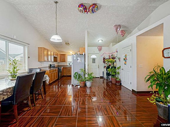 Great buy on this single level home built in 2005. 1324 SF with vaulted open floor plan; beautiful laminate floors; light and bright; slider to deck for outdoor enjoyment. Convenient kitchen includes all appliances, rich oak cabinetry. 3 bdrms, 2 baths, inside utility. FA Gas. Close to schools, shopping and transportation. Easy access to I-5.