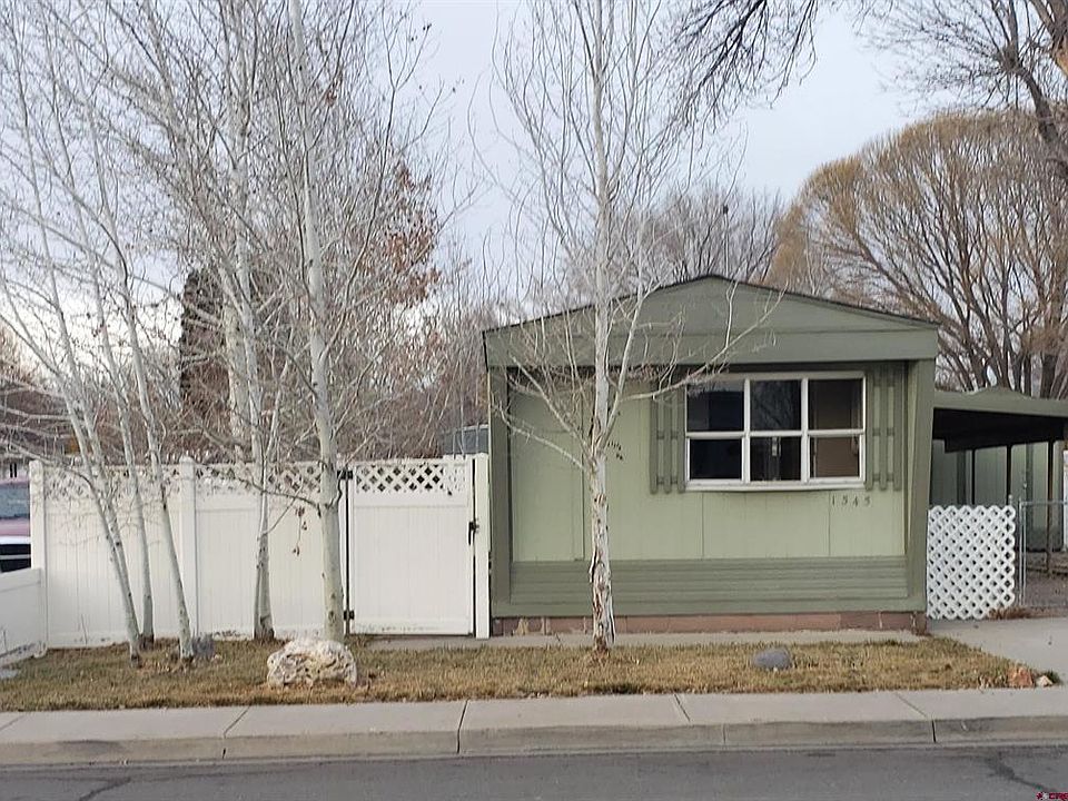 Nice, clean 2 bedroom 1 bathroom. NOTE: the land is included. This is not a manufactured home park. All residents own their land! This home has a large sunny living room and a bright kitchen with lots of cabinets & new flooring - with all appliances included - washer & dryer too! All new windows and screens. New thermostat. Larger bedroom has 2 closets. The living room features a built in China cabinet. The property is fully fenced with 2 gates and has a large carport and 1 shed. Exterior of home was recently painted. Concrete walkways around sides of home and to shed. Nicely landscaped & many aspen trees on this lot. Close to Downtown, the Montrose Hospital and all amenities. No HOA or Covenants.