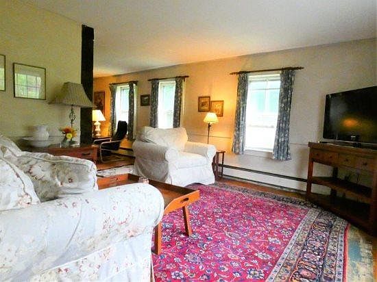 This 1875 classic New England farmhouse is located in the lovely village of North Sutton, NH and sits just a quarter of a mile walk to beautiful Kezar Lake. The first floor has an open dining, living and sitting area with a separate eat-in kitchen. You'll find beautiful (recently redone) hardwood flooring throughout, a wood burning fireplace in the living room and a serene screened-in porch. On the second level there is a full bath and 3 bedrooms: a master with queen bed, a front bedroom with two twins and an office with a twin bed. Outside there is a lush, green lawn and fire pit. With a great location, Wadleigh State Park is just steps away, Interstate access down the road a mile, five miles to New London and an easy thirty minutes to Ragged Mountain or Mount Sunapee, there are plenty of conveniences in the area. One small dog allowed on a case by case basis. Available beginning Sept. 1 2019 for a period of 9 months (academic year). Academic Year Rental. September 2019 through June 2020. Furnished.