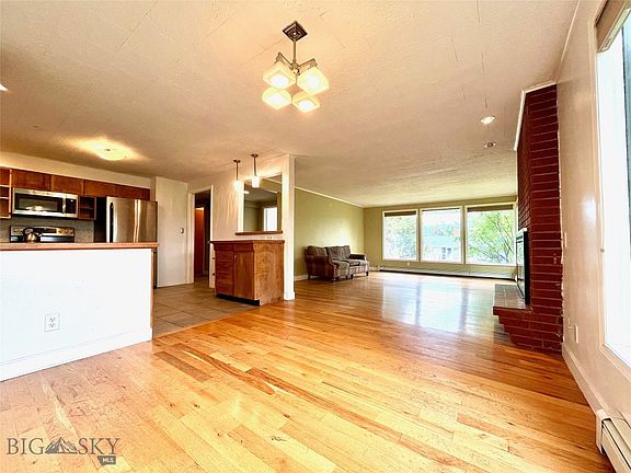 Welcome to this exceptional property that effortlessly captures the essence of natural light, creating a bright and airy atmosphere through its expansive windows. Nestled near Montana State University, this home combines timeless charm with convenient access to educational resources, cultural events, and recreational opportunities. With over 2000 square feet of comfortable living space, it offers four bedrooms and two bathrooms, providing enough room for relaxation and personalization. Upon entry, you'll discover the heart of this home—a large kitchen with ample counter space and storage, perfect for those who love to cook and entertain. The main level boasts oak flooring, while the expansive south and west-facing windows flood the space with natural light, providing glimpses of the mountains. Step out onto the wood deck accessible from the dining area and revel in the outdoor oasis.