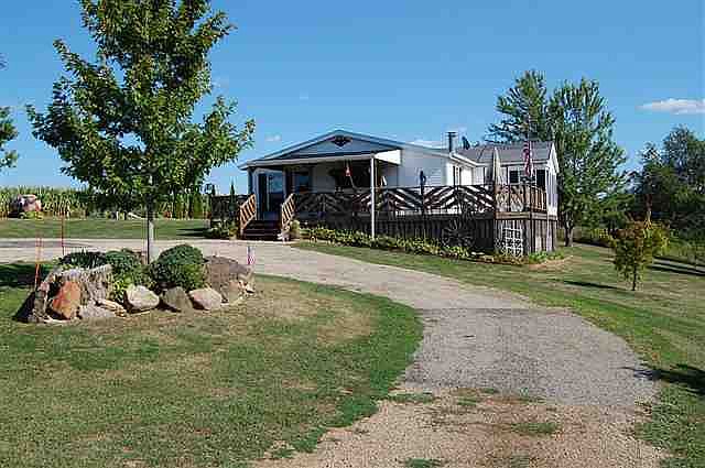 If you're looking for privacy and views this is it. Enjoy the views from the covered deck or walk the trails that wander through the 6.25 acres m/l. The grounds have many pines, oaks, maple and fruit trees as well as raspberries and ruhbarb. the garage is large enough for 4 cars, has a wood burner, workbenchs & 220 electric. There is also a small red barn building for all those smaller toys or tools. The fireplace in the living room of the house can easily heat the house, there are ample cabinets in the eat-in kitchen and the sunny 4 seasons porch is the ideal room to spend all those wintry days. The house has 2x6 walls, 200 amp electric, LP tank 500 gal, the well is 420' deep.