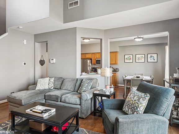 Welcome to your dream home in the heart of the desirable Amber Grove subdivision! This meticulously maintained 2-bedroom/ 2.1 bath townhome is a perfect blend of modern comfort and classic charm. This home has been lovingly cared for and is in pristine condition, ensuring a move-in-ready experience for its new owners. Enjoy the luxury of two generously sized bedrooms with bonus lofted space and laundry room on the second floor, providing ample space for rest and relaxation. The primary features a walk-in closet and generously sized primary bath with double vanity. The open kitchen and family room boasts vaulted high ceilings, modern SS appliances, sleek countertops, a lovely eat-in area, and plenty of storage along with a full pantry, making it a delightful space for culinary enthusiasts or for entertaining. Step outside to your own private patio with small grassy area, perfect for enjoying a quiet morning coffee surrounded by nature. Convenience is key with the attached 2 car garage with room for additional storage. Experience the charm of living in the sought-after Amber Grove community, known for its friendly atmosphere and proximity to dog park, children's park, schools, Metra train, and easy access to dining and entertainment. This townhome is a rare find, offering a perfect blend of comfort, style, and convenience. Don't miss the opportunity to make it yours! Schedule your private showing today! New furnace, A/C, and Nest Thermostat installed September 2023. The furnace and A/C have an active transferrable warranty for the new owner. New refrigerator installed May 2022.