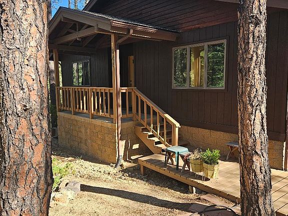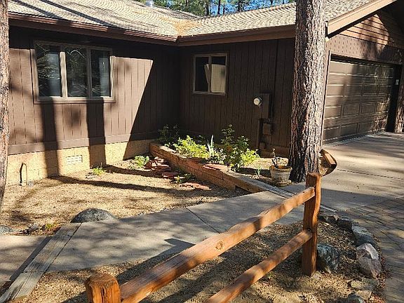 Level entry to main floor 2258 sq ft. 2 bed 2bath with eat in kitchen, formal dining room and 2 living areas. 1 with gas fireplace. Lower level access from rear deck to separate entry 360 sq ft with 1/2 bath and laundry sink. Andersen windows (19) with natural casing and baseboard. carpet only in living room large 2 car garage with ample storage. 2 additional parking spaces next to garage. Separate laundry room on main level. Solid original redwood decks. see document tab for recent upgrades totaling $45K.Master is 18.5 ft X 14.67 ft excluding 2 closets,1 Walk in. 2nd bedroom is 19 ft X 12.5 ft including closet. Hidden Valley Ranch borders the Prescott National Forest with access to several marked hiking trails