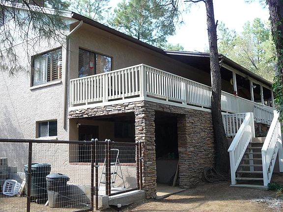5 miles from the courthouse square, horse property in the pines with access to trails in the Prescott National Forest, built by a retired stone mason, solid block exterior walls, watch the hummingbirds and enjoy the forest, relaxing on your huge wrap around deck.