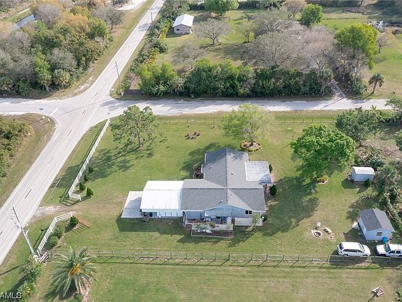 Country living at it’s finest! Your new home is situated on a fenced, corner lot with mature landscaping of natural oaks and fruit trees. Open the door and walk into the large family room where you can enjoy relaxing by the fireplace or watching TV. The large “flex” room off the kitchen gives you the privacy / solitude for a sitting room, craft room, or another family room. The dining room slider’s open to your covered lanai with a view of a large backyard. Perfect for the gardener’s, crafters, or simply relaxing in the shade of the trees. Two large storage shed are located on the back of the property for more storage or workshops. Only a short drive to a grocery stores (5 min), restaurants (5 min),Manatee Park (12 min), and the SWFL International Airport (25 min). Whether you are looking for a home to share with your friends and family or the solitude of country living - this home is for you!