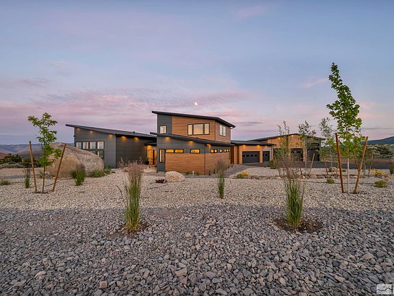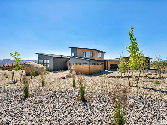 **SELLERS OFFERING $50,000 LANDSCAPE CREDIT TO BUYER** Contact listing agent for more details. Prepare to be captivated by the unrivaled opulence and modern allure of 15450 Legend View Ct, a newly constructed (2023) architectural marvel nestled on over two acres in the prestigious, privately gated Legend Vista Estates of Reno, NV. Built with Insulated Concrete Forms (ICF), making it superior to stick built homes with increased energy efficiency, strength, sound absorption, fire protection and more., This extraordinary residence is a testament to the seamless fusion of contemporary design and functional elegance, offering a lifestyle of unparalleled comfort and sophistication. Spanning 4,628 square feet across a 1.5 story layout, this meticulously crafted home is a symphony of luxury. As you enter this mountain-modern estate, you are greeted with a magnificent, oversized wood & metal pivot door, that serves as the grand entrance to a luxury. The sheer size of the door is symbolic of the home and commands attention, stretching upwards and spanning wide to emphasize the property’s grandeur. The modern architectural style is accentuated by soaring ceilings, up to 14 feet high, creating an ambiance of spaciousness and majesty throughout the living spaces. It also remains stoic, boasting a robust fiber cement construction. The interior features European Oak White Vitoria engineered hardwood flooring along with dual dishwashers, top-of-the-line appliances including Viking, Subzero, ZLINE, and Miele. Entertain in grand style in the expansive living areas. 80+ Andersen windows flood the interior with natural light and offer panoramic views of the mesmerizing blue Sierras, Mt. Rose, and the panoramic valley views. The kitchen also features an oversized waterfall quartz island, perfect for hosting and creating culinary delights. The office, which can also function as a bedroom, is perfectly perched for the best vantage points in the home. In addition to the expansive living space, the attached colossal 3,288 square foot garage, capable of accommodating nine vehicles, an RV, and a boat, is a testament to the property's unparalleled sumptuousness. It also features a vehicle lift, EV wall-mount charger, and plenty of power with 220v. Step outside to the sprawling outdoor patio, reinforced for a hot tub, and revel in the tranquility and lavishness amidst beautiful fully landscaped scenery and awe-inspiring mountain and valley views that also feature Peavine and the Virginia Range. Snuggled in a sought-after neighborhood, renowned for its peacefulness and exclusivity, 15450 Legend View Ct offers the ultimate in privacy and extravagance, while being just 15 minutes from the iconic Lake Tahoe and in close proximity to premier shopping, dining, and recreational amenities such as hiking trails and ski resorts. This is a rare opportunity to own a distinguished home designed for appointed living and effortless entertaining. Schedule your private tour today and immerse yourself in the epitome of contemporary elegance in Reno/Tahoe.