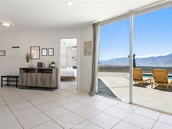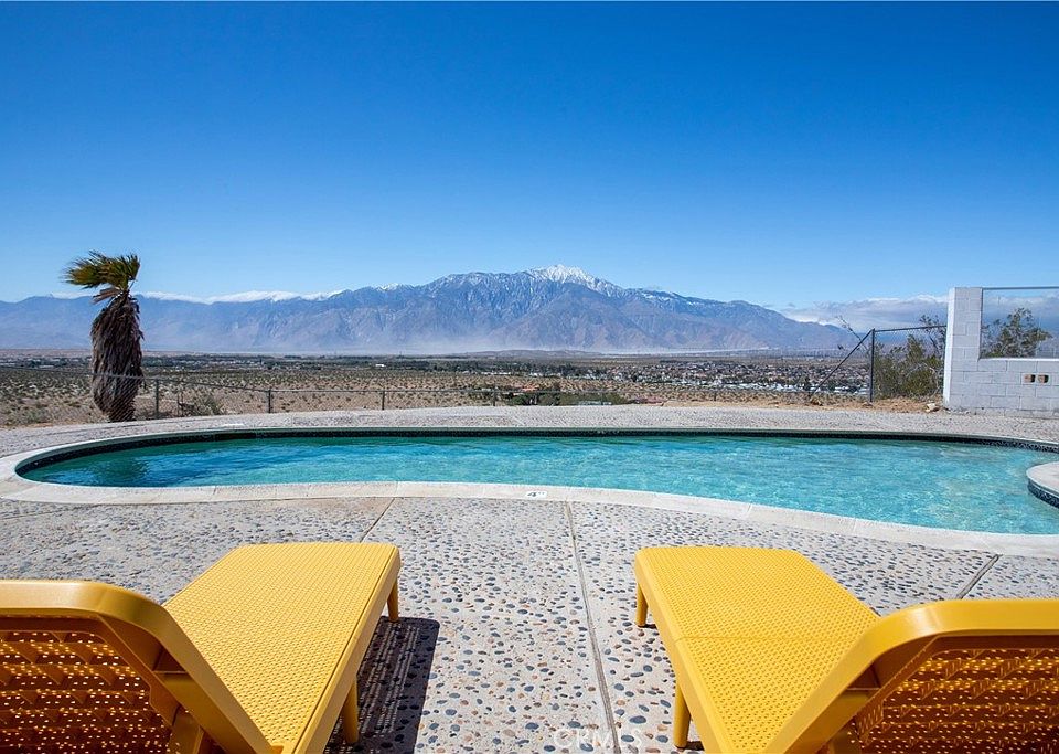 HILLTOP OASIS & PANORAMIC VIEWS & MINERAL WATER in UNINCORPORATED DHS: Experience the ultimate in privacy with this home perched high atop a hill on 2.5 acres that may only be reached at the end of a private road. Rarely is a home with this modern design, unobstructed breathtaking views, and acreage available in this area! Step inside to discover an abundance of natural light that streams through the floor-to-ceiling sliders, perfectly framing the picturesque Mt. San Jacinto and the Coachella Valley. This property boasts two elegantly appointed bedrooms and two renovated bathrooms and is equipped with smart features, including WiFi-enabled mini-splits, exterior shutters, Pentair pool pump and heater, and remote door locks. Beyond the interior, the outdoor space truly shines. Imagine entertaining against the backdrop of the majestic mountains, hosting gatherings on the expansive patio, or indulging in serene moments of relaxation in the custom-designed spa and pool filled with fresh mineral water provided by the onsite well. There is also a spacious garage with room for three cars and a workshop. Secluded, yet only minutes away from all the activities the Palm Springs area has to offer, this property is perfect for snowbirds, full-time living, or Airbnb. For investors, this home often performs at 2-3x market occupancy and ADR of similar listings according to Airbnb Insights Tab. Home has an active short term rental permit issued by the County of Riverside (home is in unincorporated DHS). Zoned W-2, the property offers additional opportunities rarely available to single family residences. Don't miss your chance to own this unique paradise! Roads are private, no drive-bys.