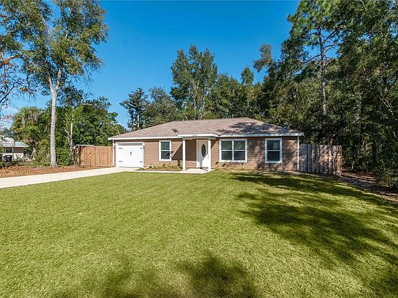 Beautiful 2024 New Construction Home. This lovely, cute 3/2 bungalow design home offers relaxed, affordable living in the country but still close to amenities. You'll appreciate features of luxury vinyl plank flooring throughout, contemporary lighting, ceiling fans, custom blinds, and low E windows. The open floor plan features a very nice kitchen with all new stainless energy star appliances, granite countertops and wood cabinetry. Master bath features subway tile and gorgeous marble surfaces. Large indoor laundry room and pantry. Situated on a private paved street with adjacent wooded lots. This is an excellent opportunity for the first time home buyer or someone looking to downsize. Enjoy outdoor living in the fully fenced backyard. The vacant lot next door is also for sale if you are looking for a bigger piece of property. Starlink was installed in April and the AC was just serviced as well. No HOA and low Levy County taxes. Conveniently located within easy travel to Gainesville, Ocala, Dunnellon and Crystal River. Come check it out today!!!