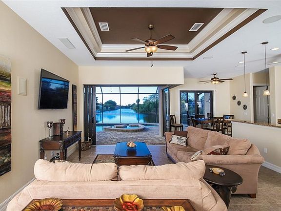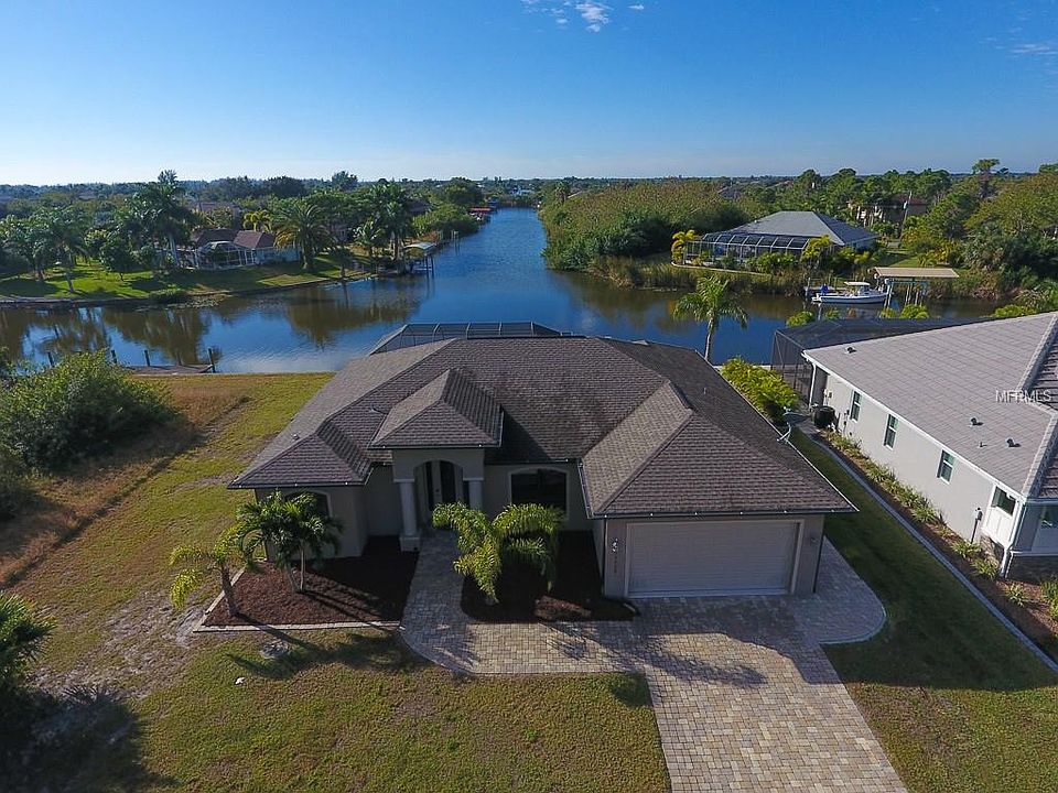 Wake up leisurely everyday while the sun kisses the morning dew as it evaporates from the much-desired Zephyr Waterway behind your perfectly situated home! Expansive water views from almost every room will have you feeling mesmerized as you spend your days in this immaculately maintained property. This highly sought open floor plan has tile throughout, volume ceilings with tray accents, 8ft doors, upgraded fixtures and zero corner sliders that allow the warm sunlight to flood into your home. The kitchen features center island, solid wood cabinets, granite counter tops and stainless appliances. Relax in the spacious master bedroom boasting sliders out to the fabulous pool, trayed ceilings and walk in closets. The master bathroom has a walk-in tiled shower with a bench, as well as dual vanities and private toilet closet. The large third bedroom has its own patio thru sliding glass doors offering a stunning long view of the intersecting canal and the second bathroom also serves as the cabana bath. Driveway, walk, lanai & pool deck all have stylish brick pavers! This home has too many extras to count and truly stunning views. South Gulf Cove is a boaters paradise with a community boat ramp and lovely community parks located just minutes away from the most beautiful beaches in SWFL, fine dining, and golf courses galore! Come enjoy the Florida lifestyle!
