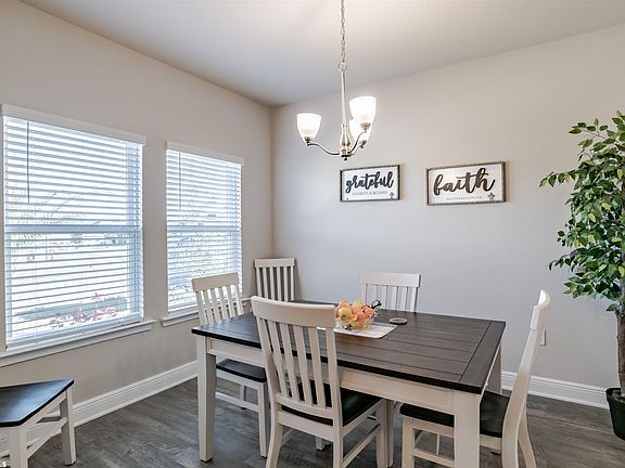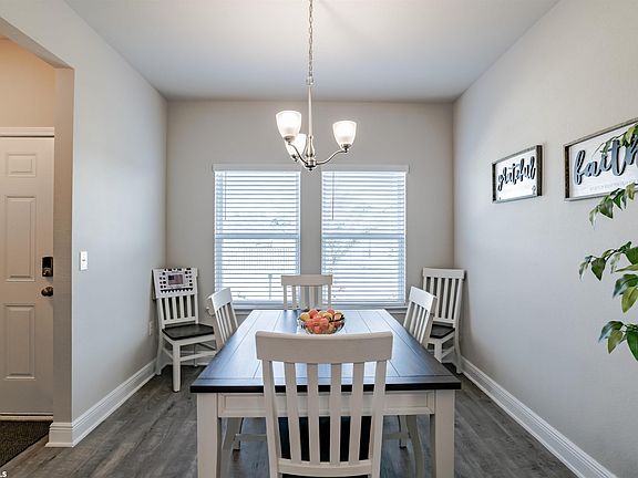 Just like new and ready for you to move in. This 3 bedroom 2 bath home is only a year old, excellent condition with LVP flooring through, trey ceilings in the living room and master bedroom, granite countertops, stainless steel appliances, formal dining room, spacious laundry room and tons of storage. The master bath has double vanities with a large walk in closet, shower and garden tub. This home is situated in the neighborhood where it backs up to farmland so there are no homes behind you and plenty of privacy. Partially fenced to allow for a view of the fields behind it and a covered patio for relaxing and cooking out. This home can be purchased furnished excluding two pieces of furniture in the second bedroom.