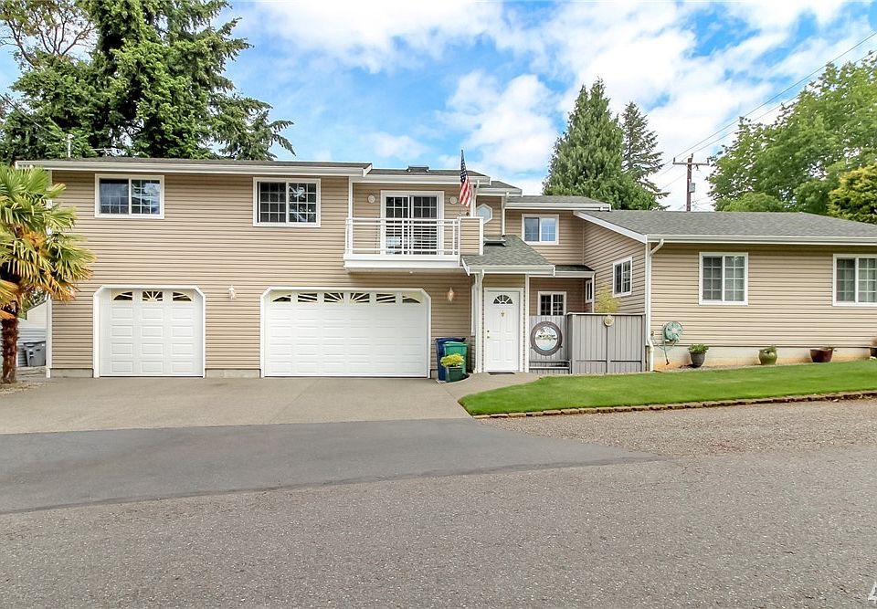 Home with excellent Covid desired privacy!!Impeccable condition throughout.Light-filled upstairs has a great room concept,kitchen with eating bar,dining area,2 bedrooms,den,1 full bath and 1/2 bath in garage.Plus,vaulted ceilings,skylights and balcony with sunny SW exposure. Lower level has 2 bedrooms and 1 full bath.Utility room on each floor.Dream 1,100 sq ft garage and shop has electrical car charger and airlines with compressor. Ideal neighborhood and location corner lot and RV Parking.