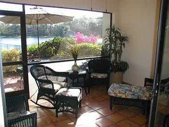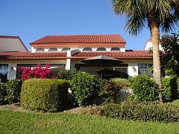 Europeon Flair Villa with 2 courtyards, overlooking large lake , close to pool, and boardwalk to back water of Gulf.