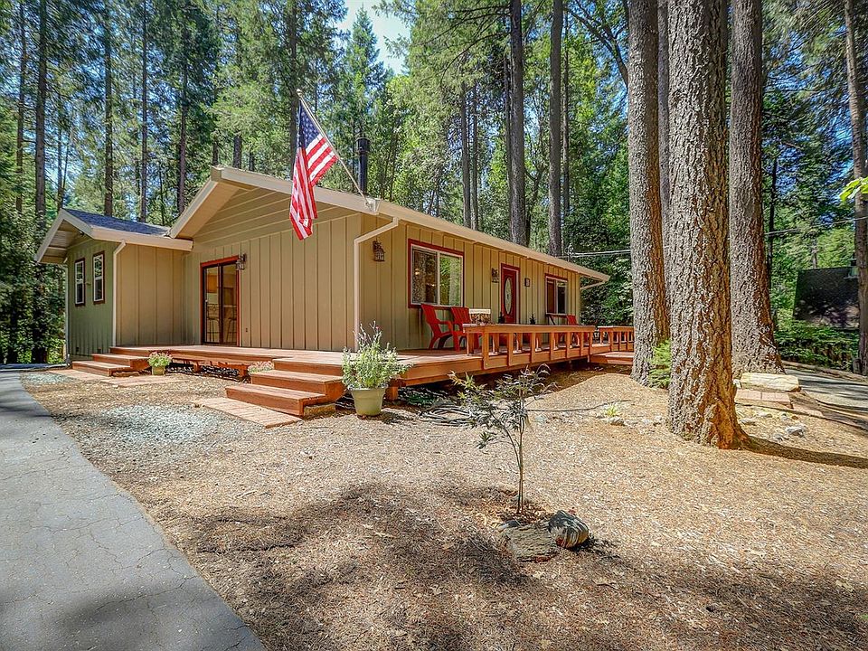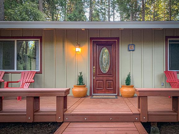 Just a short drive away to the historic district of Nevada City where flavors of the old west & the gold mining era flourish with a mixture of todays artistic millennial, is a beautiful mountain retreat nestled in the soaring pines of the Cascade Shores subdivision! This is a newer home for this mountainous subdivision and built on a level lot with one level floor plan. The kitchen is spacious with plenty of counters to cook on and cabinetry for storage.The dining room and living room are ample and can easily accommodate your large parties. The master is very private and sits separately from the guest bedrooms. Master suite amenities include a sitting area, outside access with private deck, large master bath with dual vanities and huge walk in tile shower. The land is very quiet and a peaceful setting & just minutes to the local beach and boat ramp of Scotts Flat lake otherwise known as the Lake Tahoe of the foothills! Great family fun! All this and just 75 miles NE of Sac Intl Airport