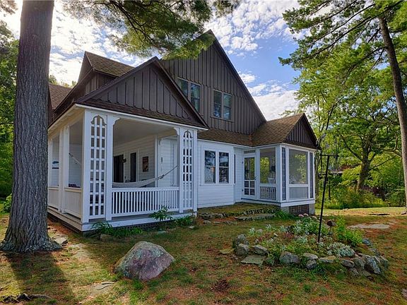 First time listed in 25 years,a pristine iconic cottage located on Historic Round Island in the Thousand Islands.Charming 4 BD,2 BA summer home with 160+ water frontage channel side with sunsets and ship viewing.Relax and enjoy 3-seasons with wood burning fireplace, porch options with open and screened to fully maximize island living.This cottage treasure is selling fully furnished with many unique cottage appointments.Selling with Lyman boat,kayaks and more complete with deep water dock that remained above high water this summer.Bonus full workshop, enclosed outdoor shower and dockside storage.Round Island (Frontenac Is) has a fantastic post office,tennis court,island trails throughout for exploring, and a wonderful summer community. Conveniently to NY mainland and Clayton, NY-A must see!