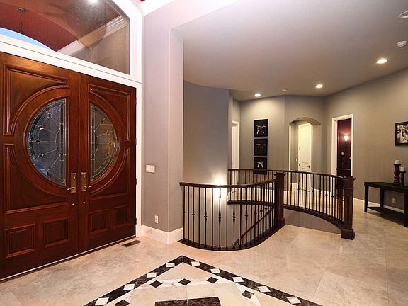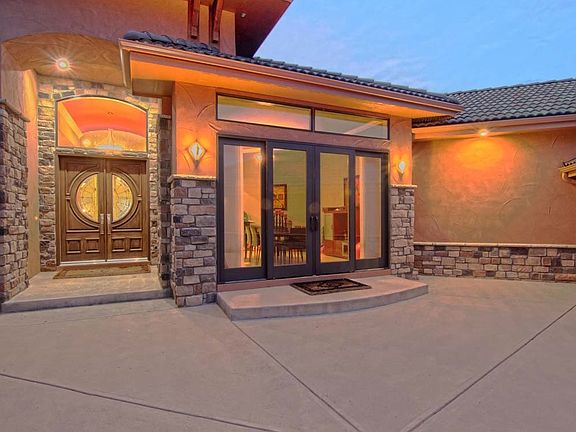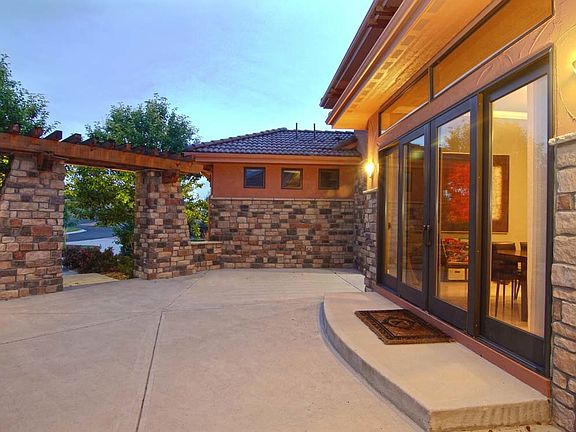 Gorgeous custom horse property with breathtaking mountain views backing to open space with a finished walk-out basement! Exquisite features throughout including travertine tile floors on the main level, a gourmet kitchen with granite counters, 6 burner gas range, double oven, custom tile backsplash and cherry cabinets. Included on the main level is the family room with beautiful views and a gas fireplace, laundry room and 2 secondary beds/baths. The incredible master suite features a double sided fireplace and master bath w/marble counters, 2 vanities, dual shower, jet action tub and incredible walk-in closet. The fully finished walk-out basement offers hardwood floors, a large rec room, a wet bar w/slate tile floors and counters, theater room, study, 2 additional bedrooms and a vault room. The exterior features a beautifully landscaped backyard with concrete patio and trex deck overlooking the mountains. Located on 2.5 acres of land in the highly desirable Spruce Meadows Community!