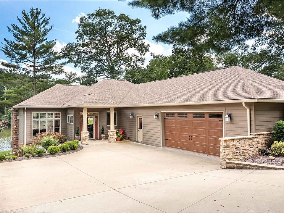 LIKE NEW Lake Sara waterfront home that comes Turn-Key Furnished! North side location in a No Wake Zone w/ deep water. This property features exceptional attention to detail $ quality. You'll love the Open Floor Plan that opens to a HUGE deck. The dual slip boat house w/ kitchen, bath, & storage is just a few short steps along a very gentle slope. The main level features hardwood floors, gorgeous cabinetry, a curved granite island, beamed ceilings, gorgeous stone fireplace, SONOS sound system, and endless lake views. The master suite has direct access to the deck, his & her closets, & beautiful bath w/ Tall Ceilings, dbl vanity, & a BIG walk-in shower w/ glass doors. Private guest bedroom & bath. And a BIG Main Level laundry room!!! The Cozy lower level is like a lodge & features a rec room w/ TV area, fireplace, wet bar, & a game area, two bedrooms, & bath. Lower level walks out to a beautiful screened porch. Beautiful landscaping w/ Irrigation system. BIG GARAGE. Shed.