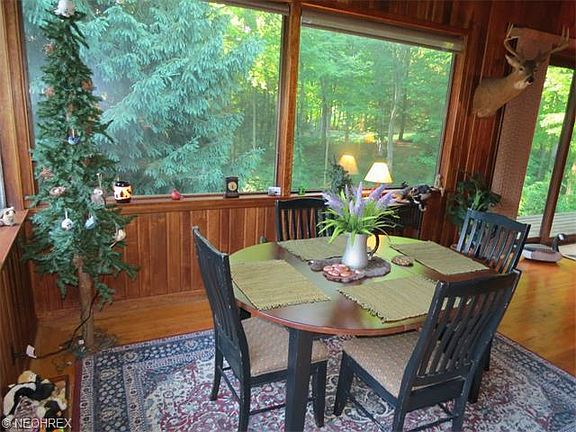 Secluded- Like Living in a Tree House Offering Nearly 3 Acres Surrounded by Large Spruce, Hemlock and Shade Trees. Unique Cedar, Cherry and Brick Home With Panoramic Picturesque Views! Solid Cherry Kitchen W/Island and Stainless Steel Appliances, Open Great Room w/Fireplace and Dining Area, Hardwood Flooring, Beamed Ceiling, Solid Cherry Woodwork, Slate Foyer, Lower Level Family Room w/woodburner, 4 Bedrooms, 2 Full Baths, all thermo windows. Upper Wrap Around Deck and Lower Level Patio to Enjoy Views of Wildlife- Deer, Turkeys, Owls, Waterfowl, ect. Underground Tunnel from house to 2 car Garage and Carport. One Year Home Warranty Included! If You're Looking for a Gorgeous Setting, Privacy, and Something Unique- 15458 Middletown Road is Calling Your Name!