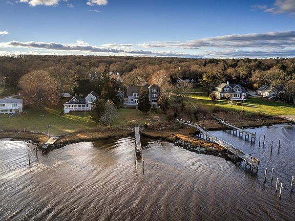 WESTPORT RIVER FRONTAGE - Travel a private lane to 1546 D Drift Road. Let's start with the third floor observatory offering panoramic views looking north, east, and south. What a retreat!! If you can tear yourself away, the completely open first floor with multiple french doors and multiple windows focusing on the river draw in an abundance of natural light making the kitchen/dining/living area a happy place. Relax on the expansive deck with covered porch perfect for alfresco dining. A cozy sitting area on the second floor separates the primary suite from two additional bedrooms and full bath. Have a boat? If not, you'll want one. This property comes with a dock complete with water + electricity systems and access to Rhode Island Sound and Buzzards Bay. An oversized garage/boathouse with unfinished loft area completes this contemporary shingle style home.