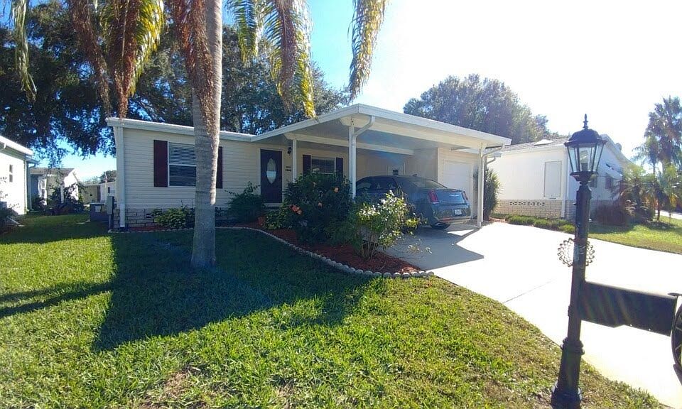 SUPER CLEAN " White Glove Ready " This home features upgrades like NO other. A MUST see home to appreciate all the features and recent upgrades. Just bring your toothbrush and clothes , because this home comes fully furnished. Your friends and guests will be impressed by the beautifully landscaped yard before they enter the cleanest home in the neighborhood. Enter the front door and you'll immediately notice the high vaulted ceilings in the open concept living area that's open to the dining area overlooking the kitchen. Split bedroom plan with separate bathrooms for complete privacy. Get ready to relax and enjoy the beautiful Florida weather with friends in your large lanai with enough seating for all your friends. Also a seating area outback for you to just sit relax and have your morning coffee or just sit and chat with your loved one. When driving in the driveway you'll notice an extra large addition for a LOT of storage area along with a spacious laundry area and for your convenience there's an area to park your golf cart within it's own garage area.