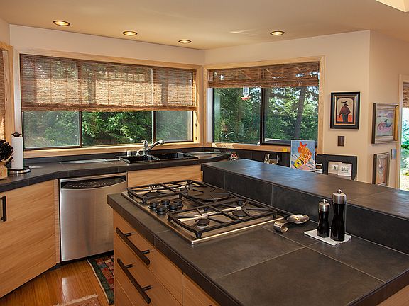 Top of the World private retreat tucked away from city lights! Breathtaking views of the bay, islands & sunsets; you're sure to enjoy the sunny gardens, shady cloisters & sounds of water at this 3,364 sq ft, 4 bd/3 ba home + den 4.68 acres. Large deck, chef's kitchen w/ European Elm cabinetry. Marble, custom woods, cabinet pulls/blindsthroughout. Wood-burning stove w/ interior wood closet. Large picture windows allow for amazing views throughout. Guest wing with private bath. Gorgeous grounds!