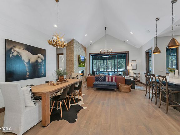 It's time to relax and unwind with this 3 bedroom, 3.5 bath turn key Pine Canyon townhome which offers vaulted ceilings, upgraded hardwood floors, a large living room, dining area and kitchen that flow seamlessly with one another. Anchored by a floor to ceiling stone fireplace, this home offers a central gathering place for family and friends. The kitchen features upgraded Wolf/Sub-Zero appliance package for the chef in your family, as well as an island with bar seating for conversation to flow. The laundry room offers additional cabinets, a granite counter for folding, and a large stainless steel sink. If you prefer relaxation over entertaining and enjoy the indoor/outdoor living that Flagstaff summer are known for, just slide open your multi-slide pocket door system and retreat to the large covered patio with a built-in gas BBQ complete with a granite counter prep area and views of the Coconino National Forest. This home is designed for families looking for the perfect mountain retreat.