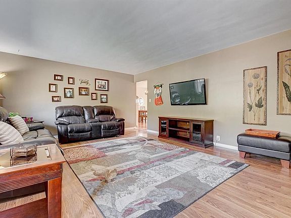 Spacious three bedroom ranch is off of a North Broadway access road, so there's no worry about backing out onto a busy street! This home features main floor laundry, hardwood floors, updated modern farmhouse light fixtures in the kitchen and dining, and a roomy master bedroom. Enclosed back porch is finished living space and walks out to the large fenced backyard. Partially finished basement allows for ample storage space in addition to the shed and extra garage space.