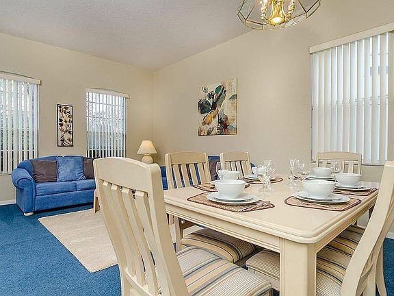 Beautiful 4 bedroom 2.5 bathroom home located in the Highlands Reserve community. This fully furnished home features a living room/dining room combination with a bright kitchen that has a lovely breakfast nook area for those more informal meals. Home is roomy with a comfortable family room that has sliding doors leading to a gorgeous private fully enclosed pool area and spa. There is a large master bedroom with ensuite bathroom featuring dual sinks, separate shower stall, and garden bath. The first guest bedroom is spacious with a queen size bed. The two additional bedrooms feature 2 beds in each to accommodate the entire family! The garage is set as a playroom with a pool table and air hockey table. This home is perfect for a full time resident, short term rental or vacation home for you and your family. The Highlands Reserve community features a playground, tennis courts, community pool, golf course and is close to all main Orlando and Florida attractions. Come see it today!
