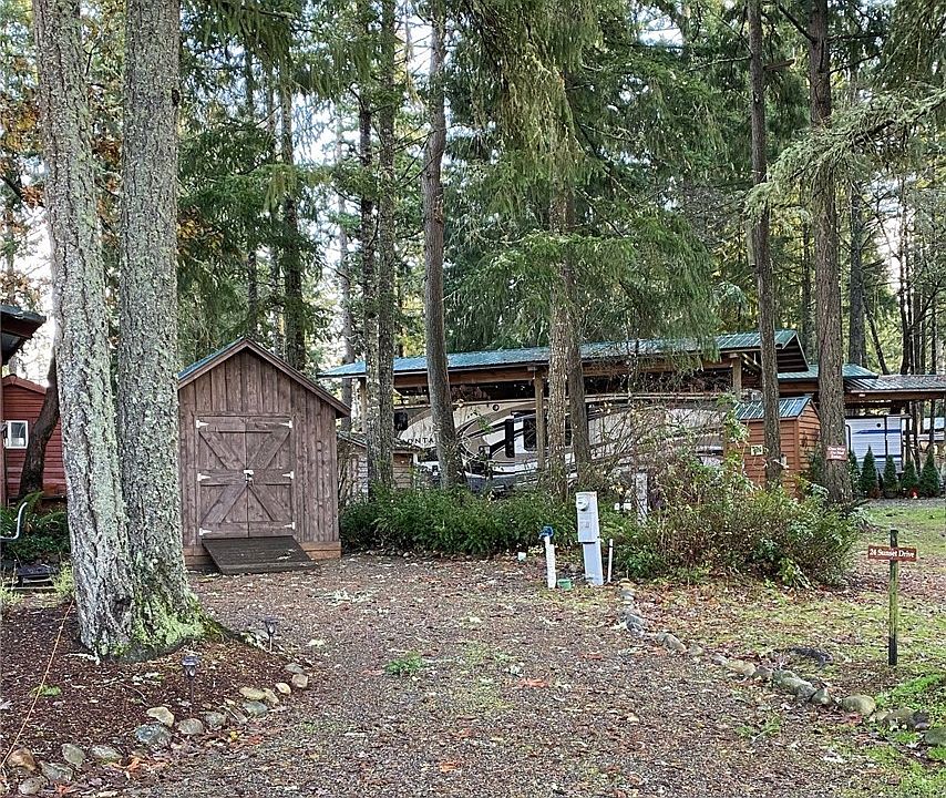 24 Sunset...Great RV Corner Lot with utilities and custom 10X12 shed. Perfect opportunity for a "get-away" or vacation lot with so many amenities in Lost Lake Resort! RV cover could be built on this lot. Enjoy the private lakefront, spring fed and stocked for fishing. Indoor/outdoor pool, pickle ball court, mini golf and trails for your summer fun! Close to I-5 and JBLM, grocery stores and shopping. LOST LAKE AMENITIES ARE 5472 SQ FT.