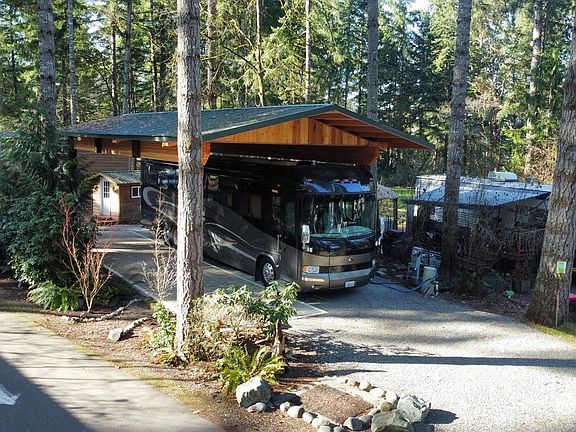8 Fir - RV site with a NEW pole barn cover located on a large (4675 sq ft) lot with beautiful landscaping and sprinkler system.Only 1 HOA. NEW pavers for a great outdoor patio/BBQ area. This lot has 2 driveways so you can access the lot from either road, Fir or Spruce.*THE RIGHT SIZE PARK MODEL CAN BE ADDED TO THIS UNIT ADHERING TO ALL THE SETBACKS AND GUIDELINES OF THE PARK*. There is a heated 8x8 shed for storage and Invisible fencing for pets is included. COA amenities include an indoor/outdoor swimming pool, kid pool, hot tub, sauna, gym with a nice variety of equipment, pool table, pickle ball, playgrounds and mini-golf and hiking trails. Enjoy the clubhouse for community events, swimming, fishing, and kayaking at beautiful Lost Lake.