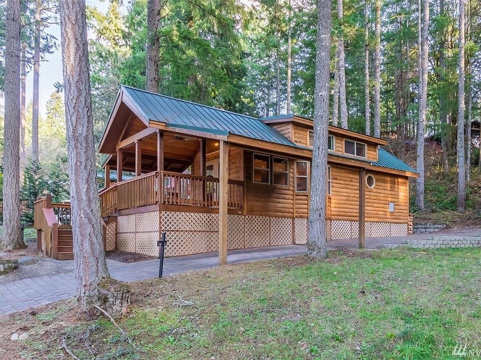 Sunset Loop "Tiny Home" Park Model and very well-maintained.French doors,vaulted ceilings,Roomy kitchen/dining room plus washer/dryer stack unit.Side deck off porch connects to storage shed.Live year round or vacation get away.Gated comm. and private lake front. You won't find anything like it in Puget Sound! Clubhouse on lake, Spring-fed and Stocked lake for fishing,indoor/outdoor pool,hot tub,pickle ball/basketball court,fitness center,minutes from I-5,shopping,restaurants.