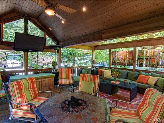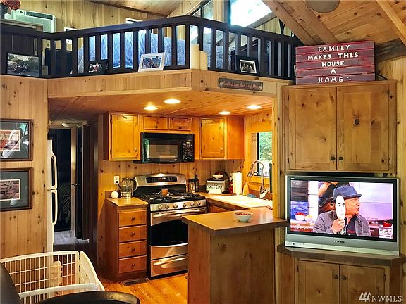 Gorgeous and Beautiful "Tiny Home" Park Model with huge covered front deck outdoor space and covered walkway on side of cabin to shed. Side deck includes hot tub and is located beside Shangri-la. Both cabin interior and Deck include all furnishings along w/propane fire pit living space along w/surround sound.Shed on lot has laundry,wash basin,hotwater tank.Pavers in front.3 TV's and surround sound.Resort has Priv lake front,clubhouse on lake,indoor/outdoor pools,fitness area, pickle court.