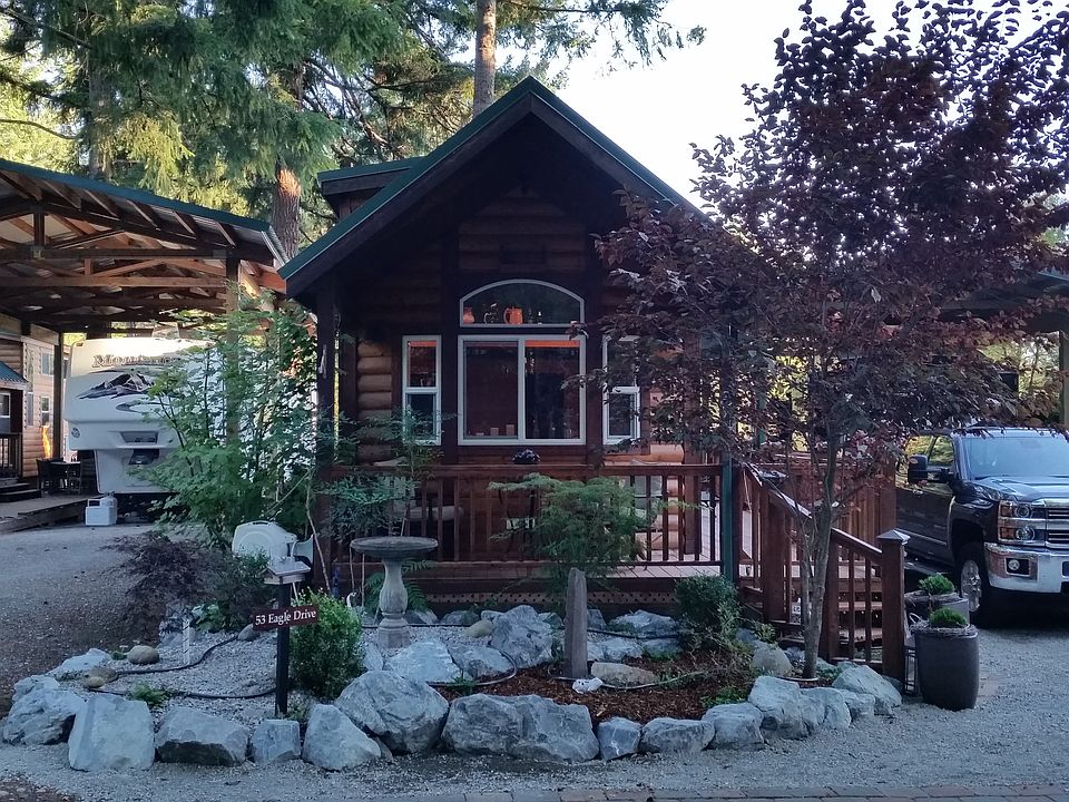53 Eagle Dr.-The largest double lot w/one HOA fee available in the resort...This AMAZING and gorgeous property has it all!CAVCO Park Model w/gutter and elec. awning.Huge Custom RV Cover w/gutter/awning.Tongue-and-groove cedar throughout,stainless steel appliances, like new laminate flooring,electric fireplace,on-demand hot water,double-room loft.A 3/4 wrap-around deck,120-gallon in-ground propane tank and 2 cabin-style cedar sheds.Resort amenities include private lake front,indoor/outdoor pools.