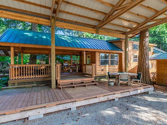 55 Eagle Dr. WOW! Huge Double Lot with only 1 HOA.VSI Park Model w/so many extra's! 20 Foot Covered front deck, Tongue and groove cedar, Extended back Master Bedroom w/Patio doors to porch deck and stairs to back yard area,new flooring throughout, Electric heat and Fireplace, Huge RV Cover, custom shed w/ Boash utilities. Resort amenities incl. Security Gate, Private Lake Front, Indoor/Outdoor Pools, Pickleball Court, Fitness area w/showers.Spring-fed lake is stocked for fishing.