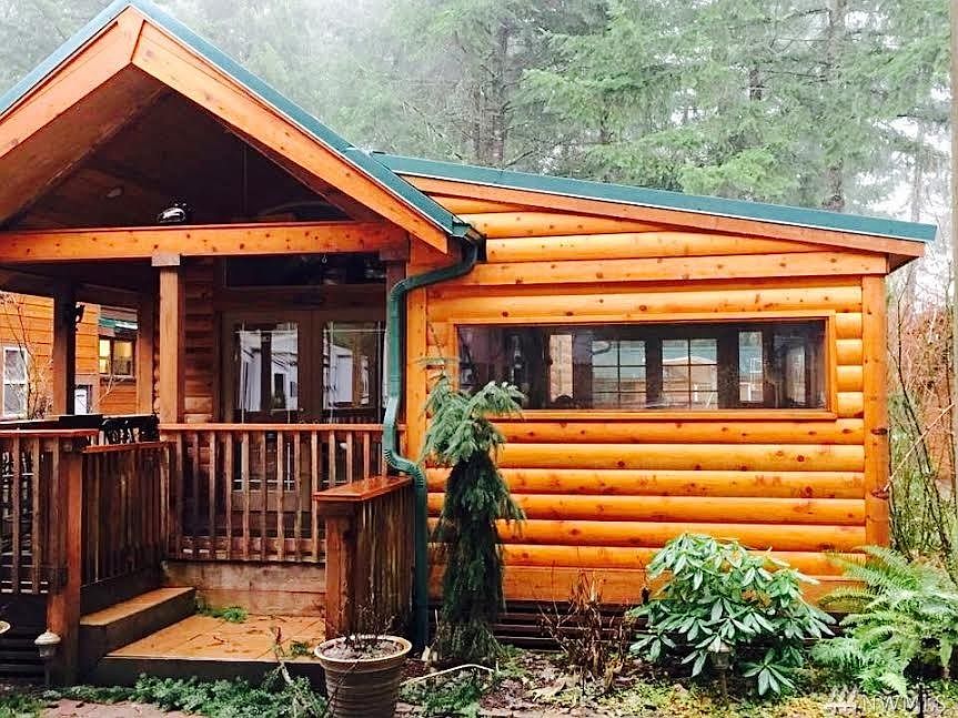 #3 Pool Loop. Own a beautiful and custom constructed Park Model plus Huge RV cover in a Gated Resort Community.Cabin has a Elec. forced air/ heating/Air-conditioning/Heatpump. Shed w/washer/dryer and storage. Covered and uncovered decks extend out from french doors at front of cabin.Vaulted ceilings, a large loft for a second bedroom and much more.Private lake front, indoor/outdoor pool, clubhouse on lake, fitness area,sauna, gameroom, trails for walks/runs. Minutes from I-5 and shopping.