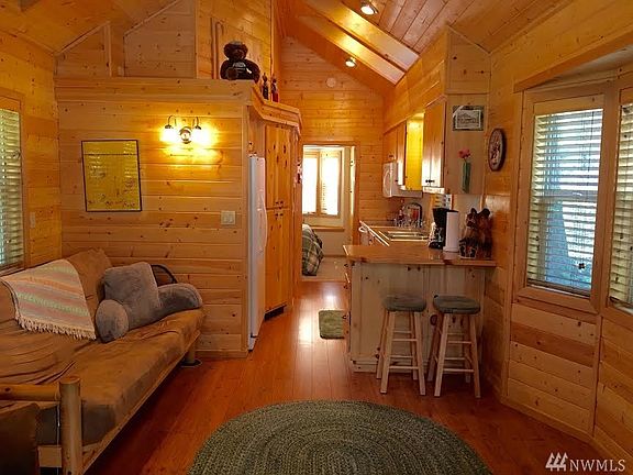 SUMMER DISCOUNT! #21 Eagle Loop.This "Tiny Cabin" Park Model is in immaculate and pristine condition with beautiful light wood,high vaulted ceilings and skylights.Furnishings included in a full-price offer.Gated community and walking distance to private lakefront stocked for your fishing enjoyment,canoeing, paddle-boats and more.Indoor/outdoor pools, fitness area,hot-tub, sauna,tennis/basketball court,game room,paved roads and trails for walking,running,biking.Perfect get-away or vacation cabin.