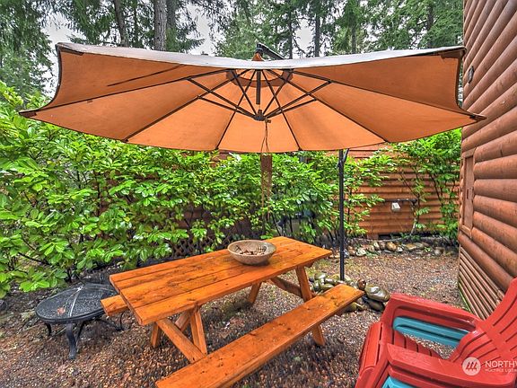*BACK ON MARKET*. Hemlock 44 Tucked away in beautiful Lost Lake Resort, this cabin has a loft bedroom overlooking the living, dining area. Recently remodeled to close in front porch/deck area to add a large bedroom/office area with beautiful barn door and electric fireplace. New appliances include electric stove top, refrigerator, convection oven/microwave. New mini split heat and A/C.This property has a shed with washer dryer hook-ups, great storage and a covered carport. Beautifully landscaped with water feature. The amenities include indoor/outdoor swimming pool, pickle ball, putt putt golf, workout room, with access to hiking trails to Lost Lake's Clubhouse and lake for swimming/fishing.