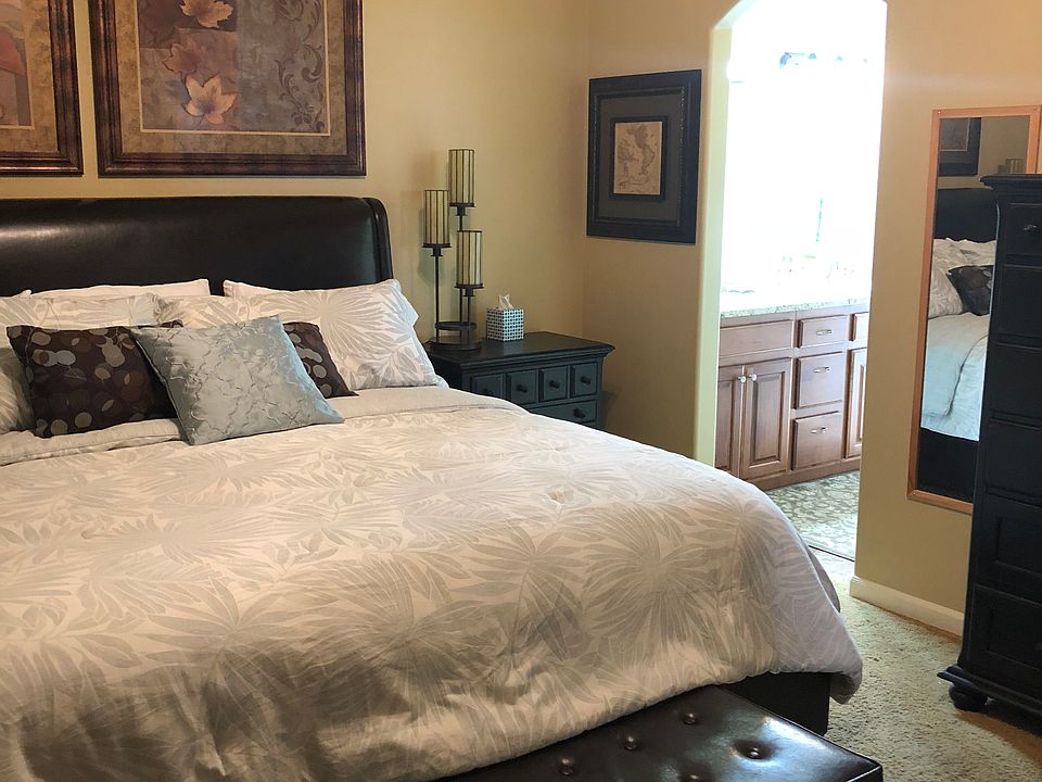 Beautifully designed floor plan with mature lush landscape. Feels like home, plan flows nicely, spacious kitchen with hardwood raised panel cabinetry, granite counters, upgraded fixtures throughout. Additional cabinets and counter space added to dining. Vaulted ceilings creating that open feeling. Exterior has 2x6 construction with additional insulation blown in the attic.