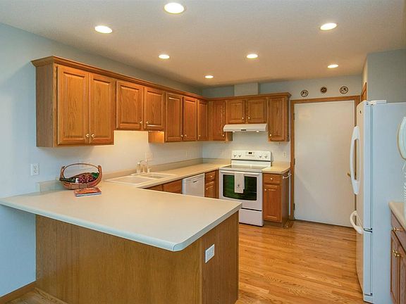 Well maintained three bedroom ranch condo with beautiful views of the lake in back/east and from front west bedroom. Recent (2010) addition of heat & A/C pump with orig. baseboard heat in sunny three-season room. (2010) - new tile and carpet on main floor. (2013)- ALL kitchen appliances new. (2009) - new vinyl railing on porch. 2001 - installed garage wall cabinets. Zero entry, open floor plan with 2 bdrms, shower bath on main & walk-out lower level, large family room, 3rd bedroom, bath,large storage rm.