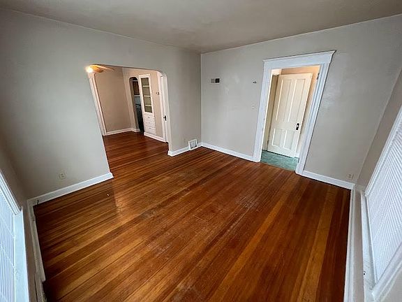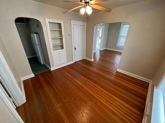 Spacious, historic main level duplex for rent. Private porch, large back yard, off street parking, washer and dryer hookups. Original hardwood floors, built in curio cabinet. Massive closet space. Tenant responsible for all utilities. Small dog allowed with additional monthly fee. Tenant responsible for lawn mowing. No smoking indoors. One off street parking space included with rent.