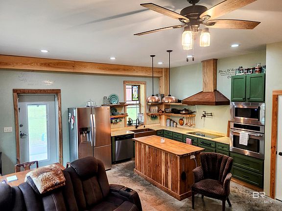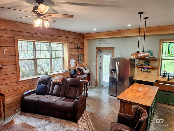 Whether you're looking for a unique residential space, a commercial property, or both, this barndominium in Foley, AL offers endless possibilities. Conveniently located on Highway 98, it provides the perfect work-from-home opportunity with a 1-bedroom, 1-bathroom living space on one side and a spacious 20’ x 40’ shop on the other, complete with two 10’ x 10’ roll-up garage doors.The large front yard offers ample space to build an additional home or commercial building, making this a fantastic investment opportunity.Property Features:Full steel construction rated for 170 mph winds Generac generator with automatic cut-off. 150-amp instant water heater SimpliSafe security system for peace of mindEnergy-efficient double insulation for lower power bills200-amp electrical service Extras You'll Love:Satsuma, Anna Apple, & Pear trees Chicken coop for fresh eggs at home Outdoor automatic lawn mower. Two flat-screen TVs included Washer, dryer, and refrigerator all stay This one-of-a-kind property is ready for your vision! Whether you need a shop, studio, small business space, or a cozy home, this versatile barndominium is a rare find.Schedule a showing today and explore the possibilities! Buyer to verify all information during due diligence.