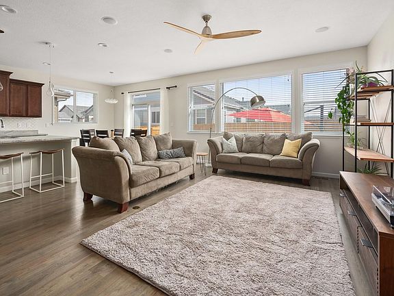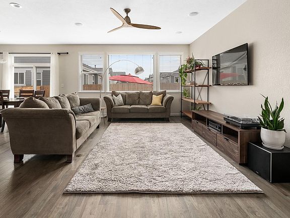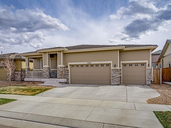 This warm welcoming ranch home is ready for you. Beautiful hardwood floors draw you in to a light and bright open concept living area. The kitchen boasts granite counters, double ovens, gas cooktop & stainless appliances. So many updated features beyond the builder grade materials make this better than a new build... including modern pendants lights and chandelier; surround sound; upgraded kitchen cabinets, upgraded hardwood floors throughout the main living area; upgraded A/C with Nest Thermostat; modern ceiling fans in master & great room. Relax in your Master Bedroom sanctuary including headboard artwork feature, barn door slider, blackout drapes and His-and-Hers closets. Host friends and family in your upgraded backyard complete with composite decking and bocce ball court. Walk one block to Villages East Park and to Buffalo Run Golf Course. Why wait for new construction?... this fabulous home is ready to go! See it today!
