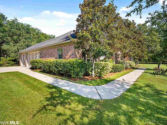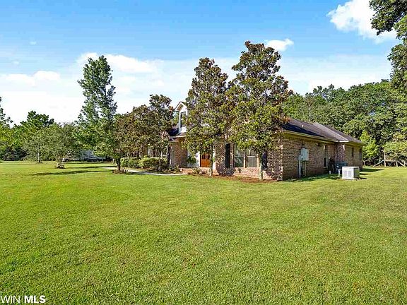If you are looking for private country living in Fairhope with acreage, then look no further. This custom built home with a barn sits on a flat 11 acres with no restrictions backing up to Green Branch which feeds into Fish River. There are 3+/- acres fenced for pasture. Upon entering, you'll notice the masterful millwork and moldings with hand milled cedar coffered ceilings in the cozy living room with a wood burning fireplace and granite countertops throughout. The master ensuite has his and hers dual vanities, his and hers closets, separate shower and water closet. Bedrooms 2 and 3 are joined by a jack-and-jill bathroom and walk-in closets. Bedroom 4 is being used as office and also has a walk-in close and en-suite bath. Kitchen has stainless steel appliances, a chef's hood hovering a 5 burner stove and a double oven leading to a formal dining room on one side and a breakfast area on the other side leading out to a covered back porch. Helping the maintenance of the grounds, the tractor, lawn mower and bush-hog convey, all have been kept out of the elements in the two-story barn that can also be used for extra storage space. Barn has a 50 amp hookup for RV or other use. The side entry 3-car garage has a 12x12 heated and cooled work space which is currently being used as an office/craft room. RV hookup with 30/50 amp power outlet at garage. Septic tank pumped late 2019, filter replaced spring 2020. Filter cleaned this spring. Also on the grounds is a 2000sq lighted putting green with 3 sand trap and irrigation system. Home has a whole home generator w/ 250 gal propane tank to run the generator when needed (20kW) with automatic transfer switch. Termite bond with Arrow. TV and internet through ATT.