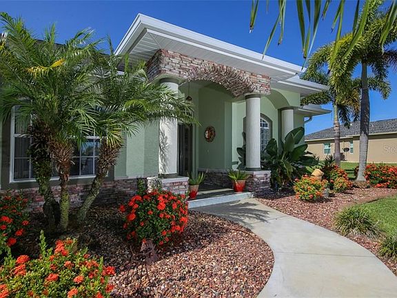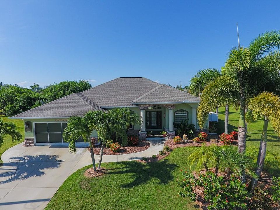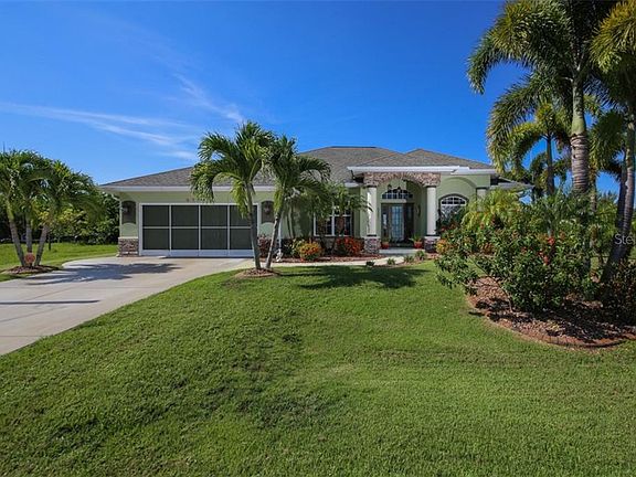 A Truly Stunning Home in South Gulf Cove Awaits Your Visit. Impeccably Landscaped with Curbing, Stone Accents & Mature Plantings this Freshly Painted 3 bed 2 bath Home with 2168 square feet of Living Space Outshines the Competition. Once inside the Front Door you will Immediately notice the Vaulted Ceilings & Architectural Details, Columns & Niches. The Dining Room, Family Room & Casual Nook Areas are Light, Bright and Open to the Lanai through the Pocketing Sliders. A Centrally located Kitchen is Just what every Home Chef wants with Lots of Storage, Granite Counters, Stainless Appliances & a Handy Center Island. The Inside Laundry has a Sink and More Storage. This Master Suite is Over Sized with Tray Ceiling, Sliders & Great Views of the Heated Salt Water Pool. The Master Bath is just as Impressive with Dual Sinks, Walk In Shower & Separate Tub. The Guest Wing has 2 Large Bedrooms with Ample Closets. The Second Bath Doubles as the Pool Bath for Easy Access from the Lanai. Hang Out or Gather Around the Pool deck has Plenty of Lounging Space. The Covered Grilling Area makes Entertaining a Breeze. A Privacy Fence surrounds the Backyard and also Includes a Shed for all that Outdoor Equipment. The Well & Irrigation Keeps everything Lush. Other Home Features Include Alarm System, Central Vac, Intercom, Whole House Gutters & SafetyZone Security & Safety Film on all Windows. Built in 2007 by Newport Builders this is the New Majestic Model. Close to Shopping, Dining, Beaches & Golf. Make Your Appointment to See.