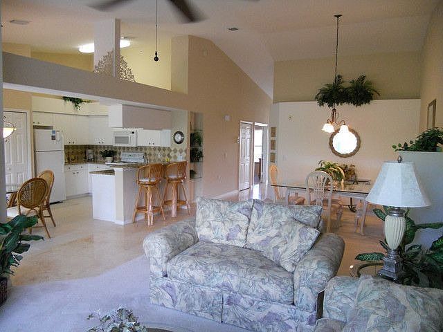 Owner Financing Available! Beautifully decorated and Refurbished. Top floor unit, high ceilings, granite & tumbled marble kitchen. Granite in bathrooms and Travertine marble floors, fresh paint. Seconds to the beach- Less than 2 miles. West of 41 - Close to Everything. 1 car garage and private lanai w/lush palms & towering pines. Bright open floor plan with eat in kitchen, large rooms. 2 miles of walking paths, 2 fresh water lakes. Unique board walk thru estuary to Bay w/ tiki hut for fishing, Har Tru tennis courts, pools & club house. also Single car detached garage, and parking space. Excellent rental opportunity. Brokered And Advertised By: Realty World Florida Listing Agent: Joseph Pavich