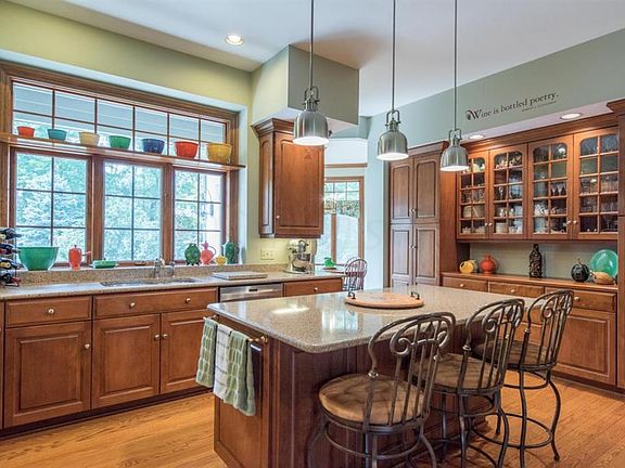 One of a Kind Custom Built Home Contracted & Built by the Family! 3 Acres of Private Wooded Nature at its best. Grand 2Story Foyer w/ Marble Floors & Winding Staircase. Dining Rm w/ Crown Molding & Railing, Office w/ Built-in Shelving, Custom WoodWork Throughout. Hardwood FLR Island Kitchen w/ Quartz Counters, HandCrafted Cabinets, Stainless Appliances & tons of storage. 17 Ft Floor to Ceiling Wood Library Paneling w/Brick WoodBurning FP. 1st FLR Owners Suite w/Gas Log FP, Private Closet, Shower & SoakingTub. Adjacent 3 Season Rm w/attached Deck & HotTub. Finished Walkout Lower Level w/Stone WoodBurning FP, Wine Rm, 2nd Kitchen, Bedroom, Bath & Workout Rm. 2 Beds, 1 Bath Upstairs & Separate Entrance from Garage for Business, Teen Suite or RecRm. Laundry w/ Sink, Closet & Bath. 4Car Garage. 18ft x 36 ft inground pool installed in 2021 with gazebo and artifical turf surrounding it.