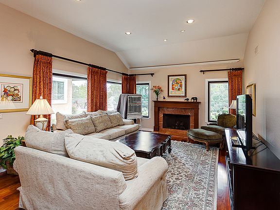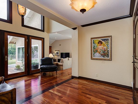 The scenic drive from Sand Canyon Rd. to this beautiful home is worth the visit alone. Feel yourself relax as you wind through breathtaking estates, complete with 100 yr trees and natural canyon landscaping. The community is a special place to call home. A rare single story with its own private Oak grove is now available. An oversized Alderwood front door opens to the brilliant Santos Mahogany wood floor throughout. The remodeled kitchen features Thermador induction cooktop, Miele convection oven, Miele speed oven, 2 drawer Fisher-Paykel dish washer, Subzero, Seafoam granite counters, Mahogany wood floor and Woodmode/Brookhaven cabinetry. The formal dining room offers one of three fireplaces in the home. The master suite includes a sitting room, walk-in closet, dual sinks, tub and separate shower. The property is nearly a full acre, enhanced with amazing oak trees and redwoods in their natural habitat and teeming with wildlife. Additional features include dual pane windows, plantation shutters, crown molding, new 75-gallon water heater, new HVAC, 3 car garage.