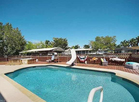 Welcome to one of the best PRESTIGIOUS BOATING neighborhoods in SW Florida offering quick deep Gulf access and only 8 houses from the River and minutes to Fort Myers beach and Sanibel. Take your boat or walk to the beach! Oversize lot located at the end of a cul-de-sac with water views from the front yard! Enjoy 145 ft of canal frontage. This beautiful RENOVATED home is truly outstanding with too many options to list! Brand new roof and much more. If you are looking for privacy and a great home for entertaining, this is it! Large enough for a family or your guests with 2 master suites, Guest house, 2 bedrooms + 5 full baths with 4600 sq ft of lv! Special features includes a GUEST HOME with a living room, bedroom, kitchen and bathroom with own private entrance, perfect for privacy! Home offers a living room, huge kitchen, family /dining room, Game room, loft, EXTRA LARGE Master retreat with 2 California closets and beautiful water views from the private balcony! Ultimate outdoor living with a salt water pool w/slide and spa, sandy beach area, built in grill, and for entertaining a HUGE TIKI BAR! A boaters delight with 12k lift and canopy. A MUST SEE!