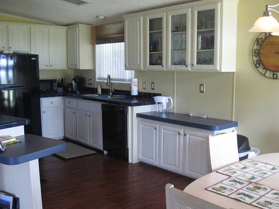 New Roof...New Air... Newly Remodeled...Plus So Much More!! This lovely home is located on lot leased land in Four Lakes Golf Club, a gated 55+ community Here you own the home, but not the land. Lot rent gives you and your guest access to the amenities of the park. It features two bedrooms, two baths, dining area, bull nosed corners, upgraded kitchen and large master suite with walk-in closet. The large screened Florida room has beautiful views of the ninth green and the wide driveway leads to the golf cart shed which includes the golf cart! This home is beautifully decorated and comes turnkey! After walking into this home, you might just see that it's the perfect home for you!