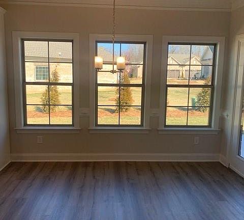 This one level all brick and stone town home is a must see. The large family room and primary bedroom both have vaulted ceilings complete with ceiling fans. The open concept kitchen has beautiful White cabinets and a large Island with room for barstools on one side and storage on both sides. The kitchen countertops are a lovely Moonwhite Granite. The 2nd and 3rd bedrooms are roomy and located on the other side of the house from the primary bedroom. The house comes complete with wainscoting, 2-piece crown molding, chair rail designating dining area, 5 1/4 base boards and LVP flooring throughout. There is a covered patio and small fenced yard. You can park in your 2-car garage and enter there or from your private paved walkway.